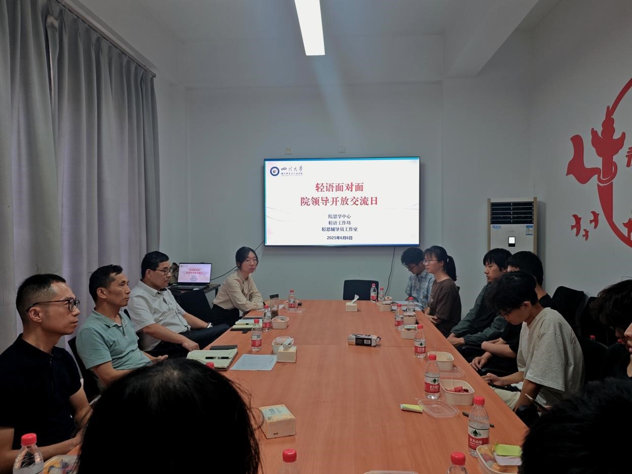 2025年6月6日,威廉williamhill体育党委书记李天富、院长彭必雨、副书记姜新赴江安校区十八舍“一站式”学生社区,以茶话会形式开展“轻语面对面——院领导开放交流日”活动,与本科生亲切交流。2023级本科生辅导员李有真主持活动。