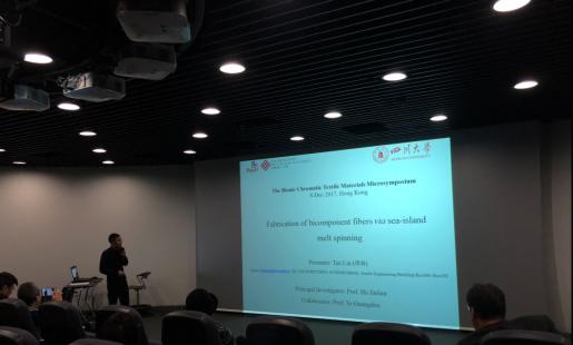 2017年12月8日,我院纺织与服装工程系谭淋副研究员应邀参加了香港理工大学举办的“仿生多彩纺织材料微论坛”(The Bionic Chromatic Textile Materials Microsymposium),并作了“基于海岛熔融纺丝技术制备复合纤维”(Fabrication of composite fibersvia sea-island melt spinning)的学术报告。论坛期间,谭淋副研究员对我院的各学科也做了积极地介绍和宣传。参加本次学术论坛的还有来自香港科技大学、南洋理工大学、天津大学、大连理工大学、武汉理工大学、台湾逢甲大学的院士和专家学者等。