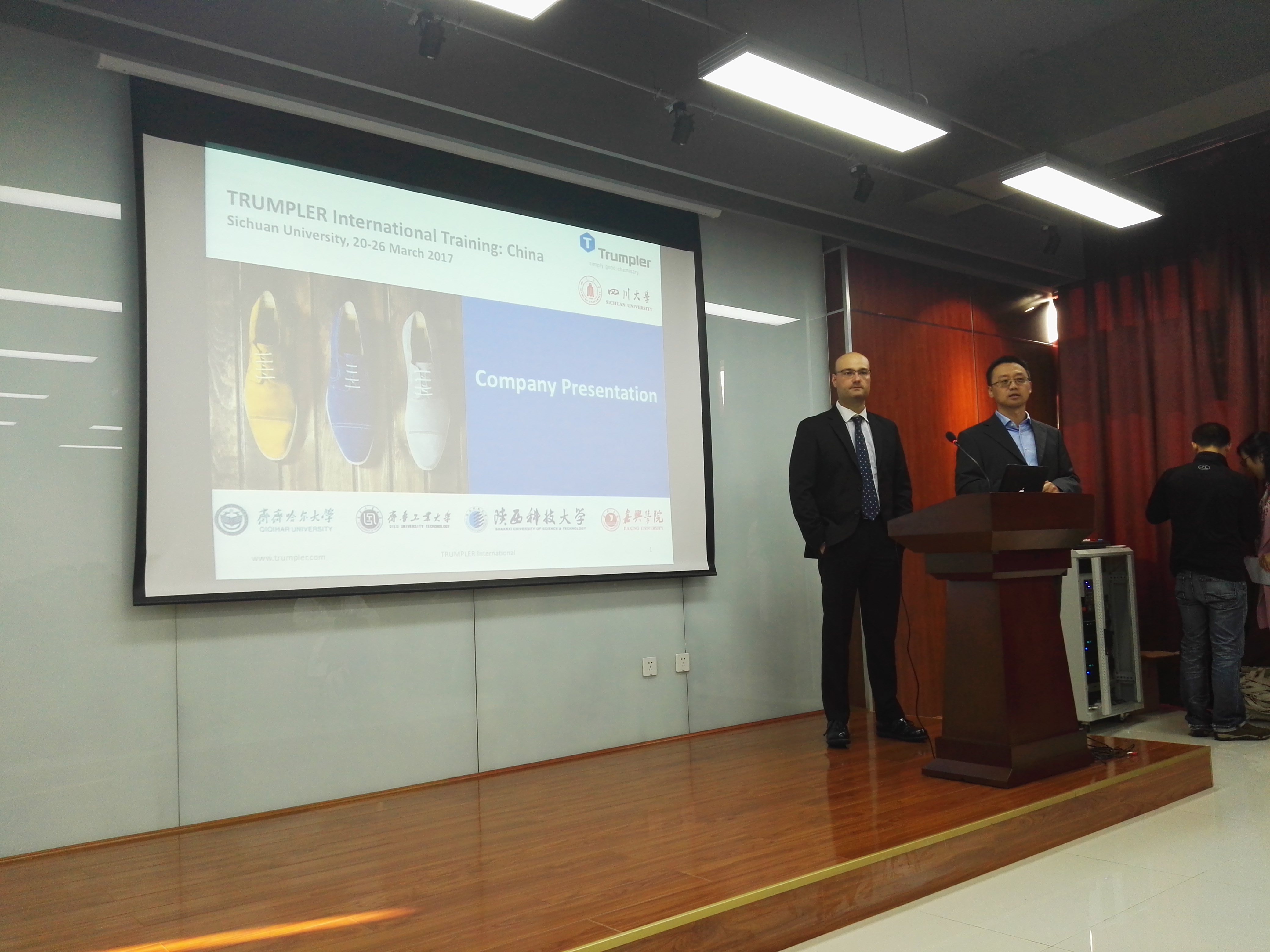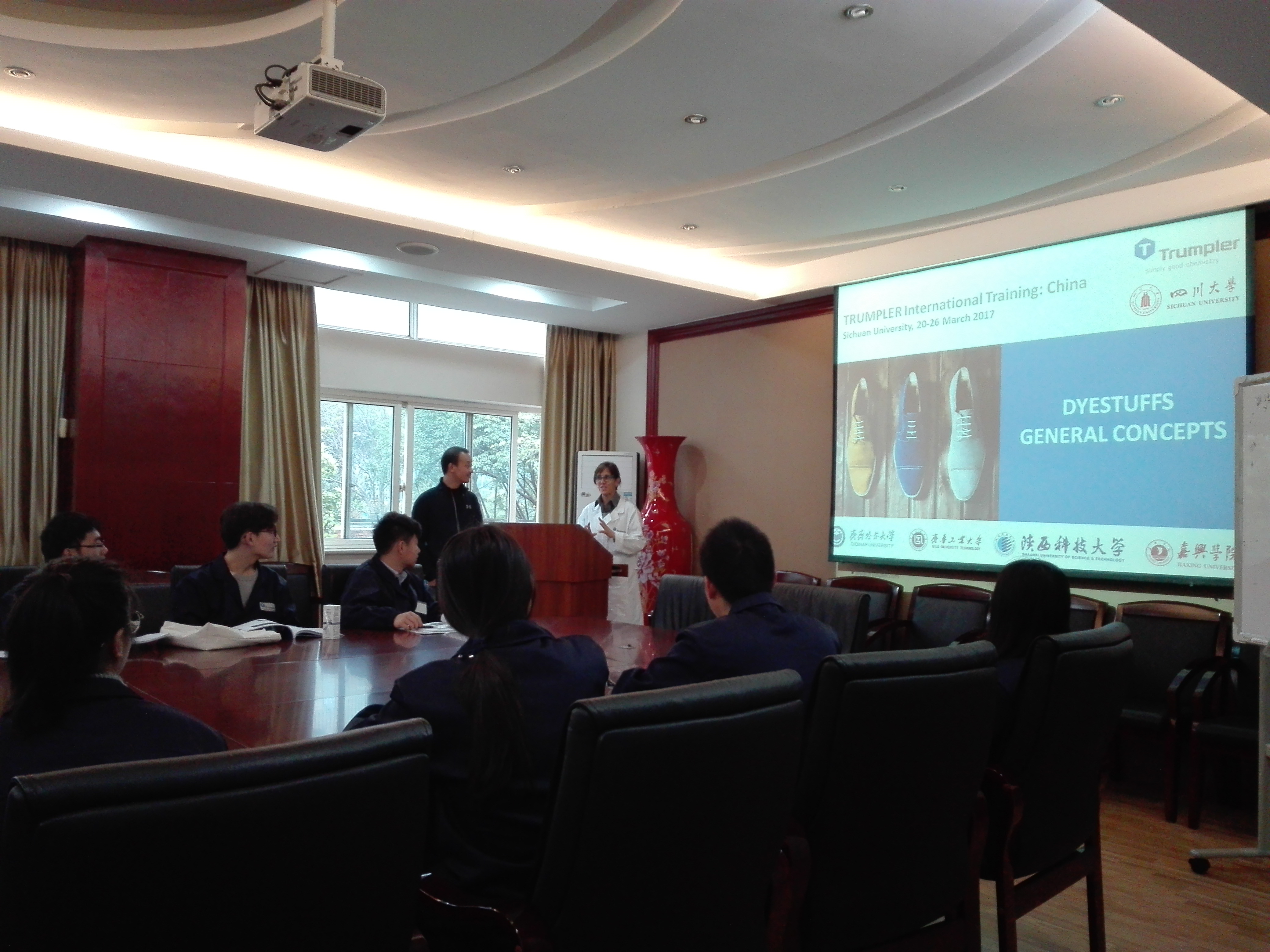 由汤普勒化工染料(嘉兴)有限公司与四川大学威廉williamhill体育联合举办的“汤普勒-四川大学制革技术培训班”于2017年3月20日在四川大学威廉williamhill体育生物质与皮革工程系开班。开班仪式于上午8:30在四川大学皮革楼二楼报告厅举行,开班仪式之后进行了“Open Lecture”。 出席开班仪式的TRUMPLER公司嘉宾有汤普勒中国总裁Mr.Joaquin Linzoain Acedo(西班牙籍)、汤普勒中国总裁张建维先生以及汤普勒德国、汤普勒西班牙以及汤普勒中国研发、推广和技术团队共计12人。