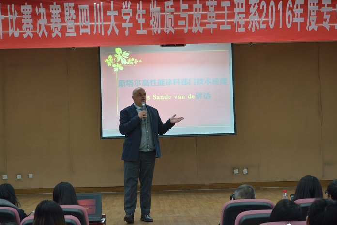 2016年12月9日,中国皮革协会奖学金、狮岭杯箱包设计比赛奖学金、BASF奖学金、斯塔尔奖学金、广州美多绿奖学金、德国司马公司创新奖学金、欣驰—博奥奖学金、吴建军助学金颁奖典礼暨第九届狮岭杯箱包设计比赛决赛在江安校区法学院报告厅隆重举行。受四川大学生物质与皮革工程系的邀请,中国皮革工业协会名誉理事长苏超英先生、德国司马化学(香港)有限公司皮革部中国区张建华经理、斯塔尔高性能涂料部门技术经理凯斯先生、斯塔尔广州技术服务中心高性能涂料实验室经理夏敏先生、斯塔尔广州实验室经理李艳女士、斯塔尔合成革应用技术专员李冠男女士、广州狮岭皮革皮具产业研究中心副主任罗杨先生、龙虹池干事参加了本次活动。出席本次颁奖典礼的学院领导有四川大学威廉williamhill体育院长、生物质与皮革工程系系主任何有节教授、生物质与皮革工程系副系主任彭必雨教授、张宗才教授、2016级轻化工程专业名誉班主任金勇教授、杨璐铭副教授、生物质与皮革工程系革制品设计教研室主任徐波老师以及学生工作组老师。生物质与皮革工程系全体获奖学生及2015级、2016级生物质与皮革工程系本科生参与了本次典礼。