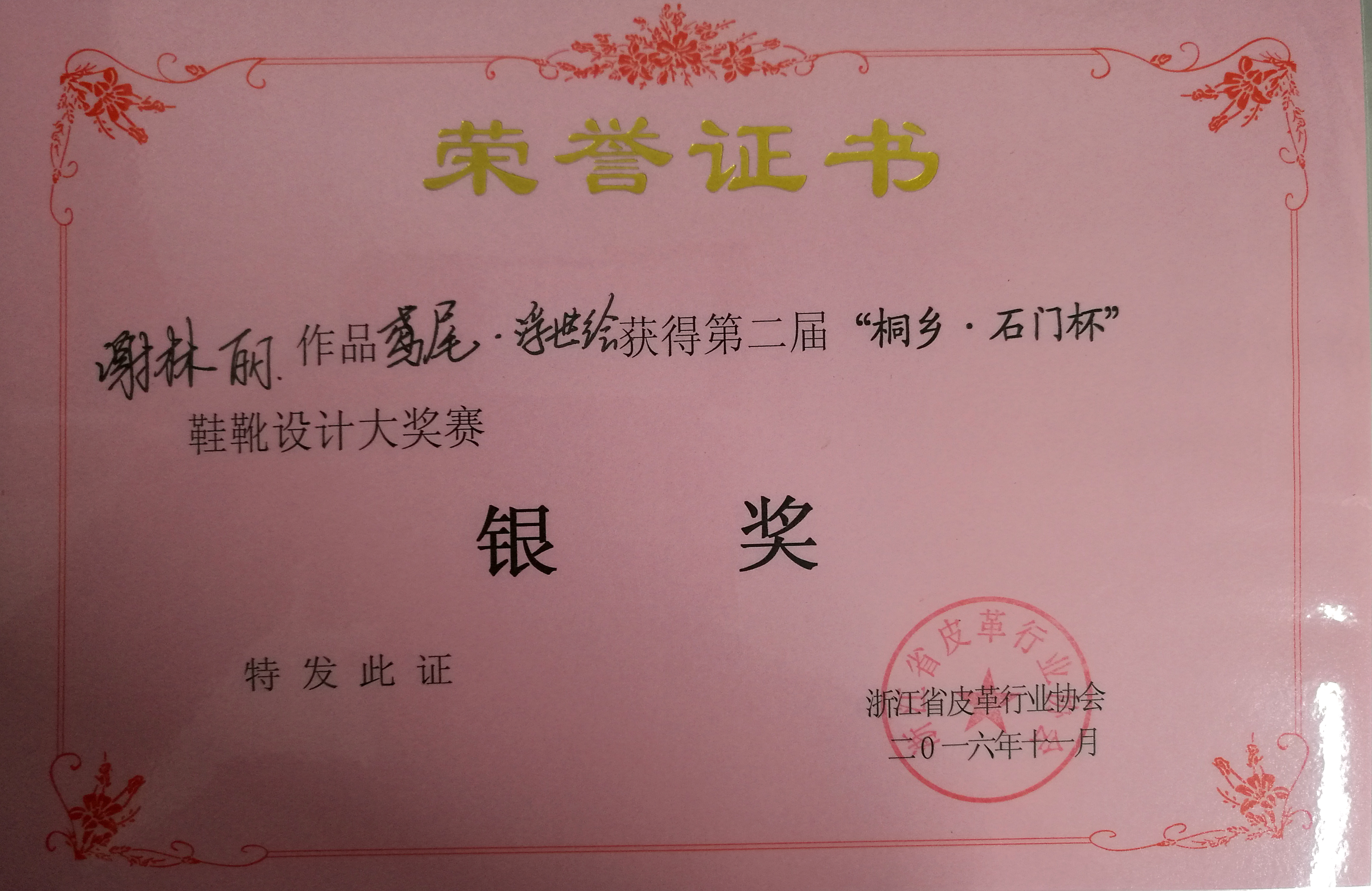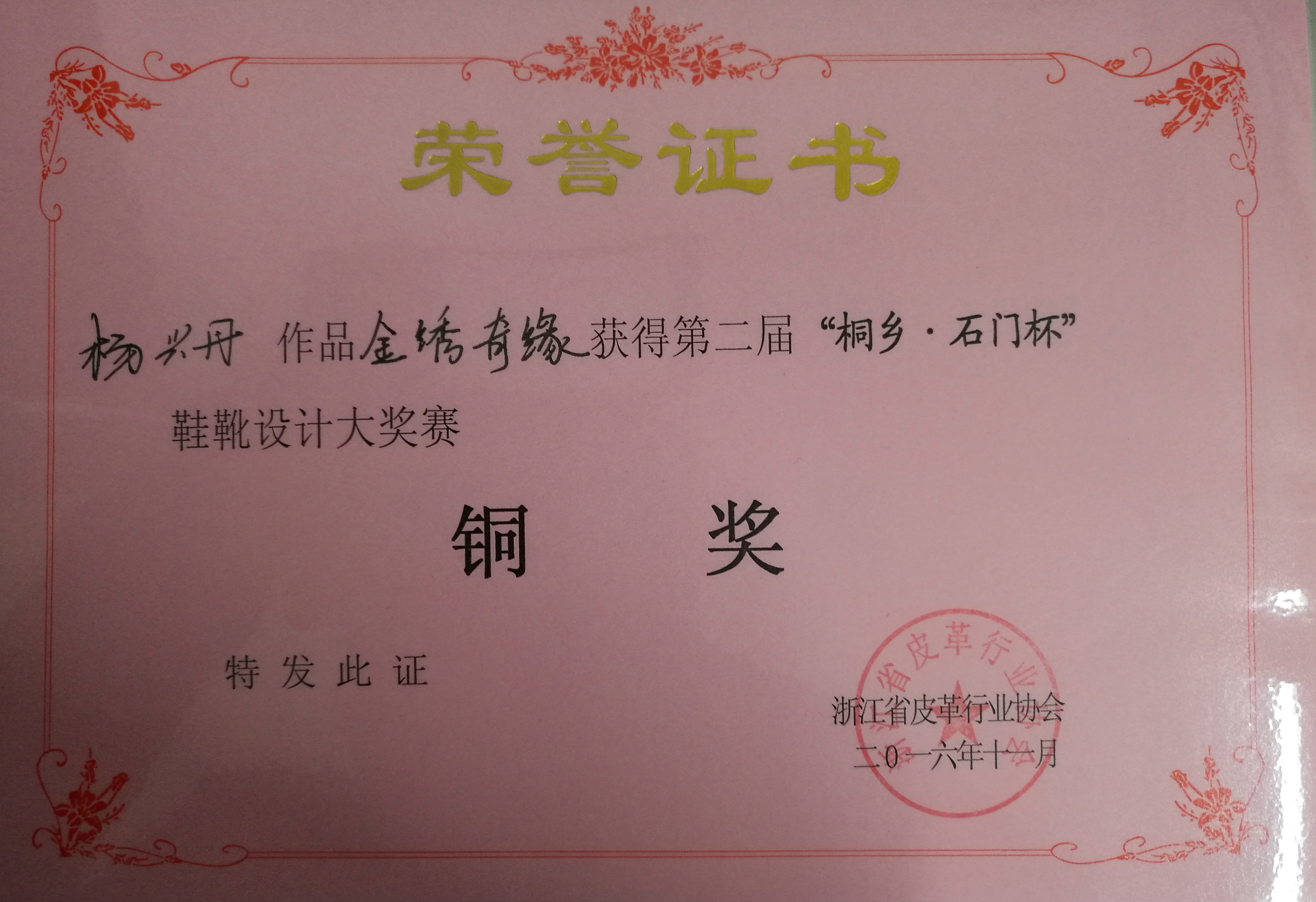由浙江省皮革行业协会、桐乡市人民政府主办的第二届“桐乡·石门杯”鞋靴设计创作大赛落下帷幕。大赛从2016年2月份开始征集作品,收到了全国20多所艺术院校、30多家企业及个人的参赛作品数百件。大赛作品经过来自院校和行业七位专家组成的评审组的认真评选,分别对参赛作品的设计理念、结构图、效果图、文字说明等方面进行了严格评审。我院革制品专业方向的同学在本次比赛中获得了优异的成绩:其中,谢林利作品《鸢尾浮世绘》获得了银奖、杨兴丹作品《金绣奇缘》获得了铜奖,另有多名同学获得优秀奖。