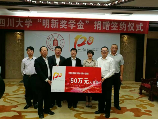 9月25日,明新旭腾新材料股份有限公司向四川大学捐赠、设立“明新奖学金”。签约仪式在四川大学望江校区明德楼贵宾厅举行。李旭锋副校长、庄君新董事长分别代表四川大学教育基金会和明新旭腾新材料股份有限公司签署了捐赠协议。副校长李旭锋教授、副校级干部侯太平教授,四川大学有关部门及威廉williamhill体育赵毅书记、何有节院长等参加了签约仪式。