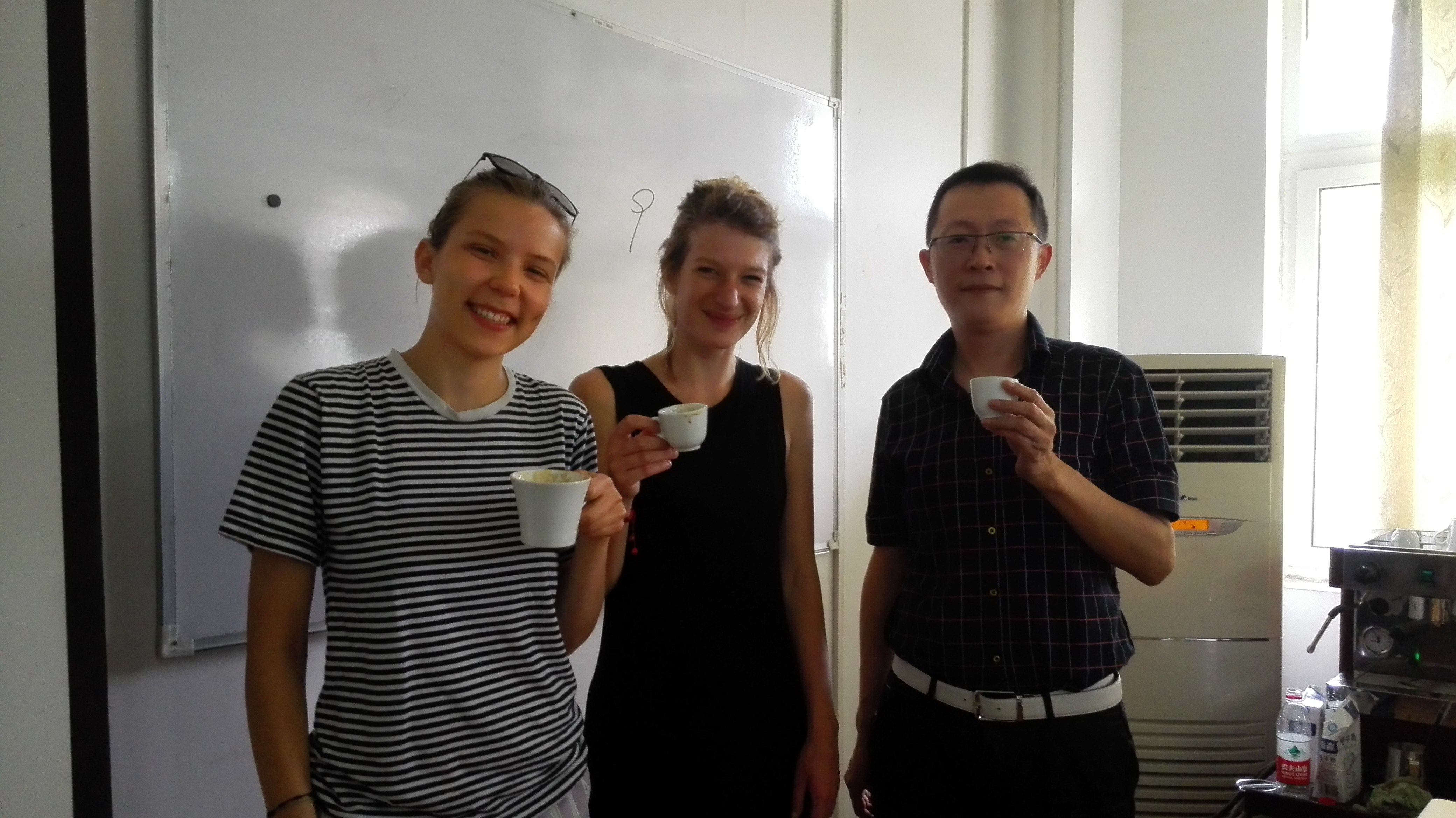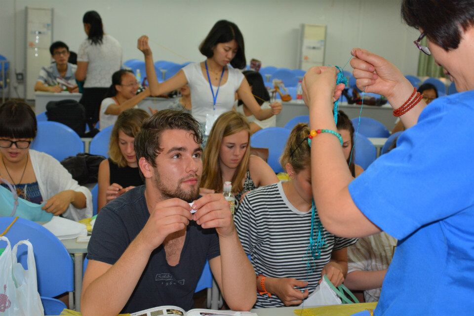 经过前两天的了解磨合,国际交流营的同学们对中国文化产生了浓厚兴趣。2015年7月8日上午9点,在四川大学望江校区纺工楼副楼205教室,是赵敏老师的蜀绣概论及绣花实践课程。赵敏老师首先为国际交流营的同学们介绍了蜀绣的历史和文化,之后详细地讲解并演示了蜀绣的几种基本针法,并指导学生们进行练习。传统的丝线和超级纤细的羊毛针让绣花的第一个过程:穿针都变得无比艰难,但是在老师的帮助下,同学们先后开始了练习,整个教学过程,理论与实践相结合,让大家非常投入。德国籍的Mary和荷兰籍的CAS悟性很强,第一次接触蜀绣就能掌握要领,得到了赵老师的表扬。中外学生对蜀绣非常感兴趣,直到老师下课他们都还不舍得离开教室。课间休息的时候,Doreth和Maria还去咖啡鉴赏课上品尝了卡布奇诺和意式特浓咖啡,她们觉得咱们的咖啡非常好喝,跟他们在家乡喝到的味道很像。咖啡鉴赏课的汪凯老师给她们介绍说,咖啡豆是在成都烘焙的,今天品尝到的都是由持有中国中级咖啡师证的咖啡师煮的,烘焙好七天以内的新鲜豆,让她们惊叹不已。下午国际交流营的同学一起乘车前往充满浓郁中国民国风情的小镇——安仁古镇。一路上,他们兴致勃勃的欣赏着窗外优美、静谧的田园风光。到达古镇后,曲折的小桥、潺潺的流水、木制的建筑对他们来讲是文化的碰撞更是一场视觉的盛宴。除了中华文化,他们尤其欣赏中国工艺品的设计思路,雕花的木门、镂空的金玉银器、精美的织物和服饰都是他们镜头里的“尤物”。中国传统美食尤其是风味小吃也同样极具诱惑力。整个一天的行程下来大家都非常开心,无论是专业的知识还是中华文化都收获不小。相信通过几天的磨合和交流,双方友谊也会更上新台阶。