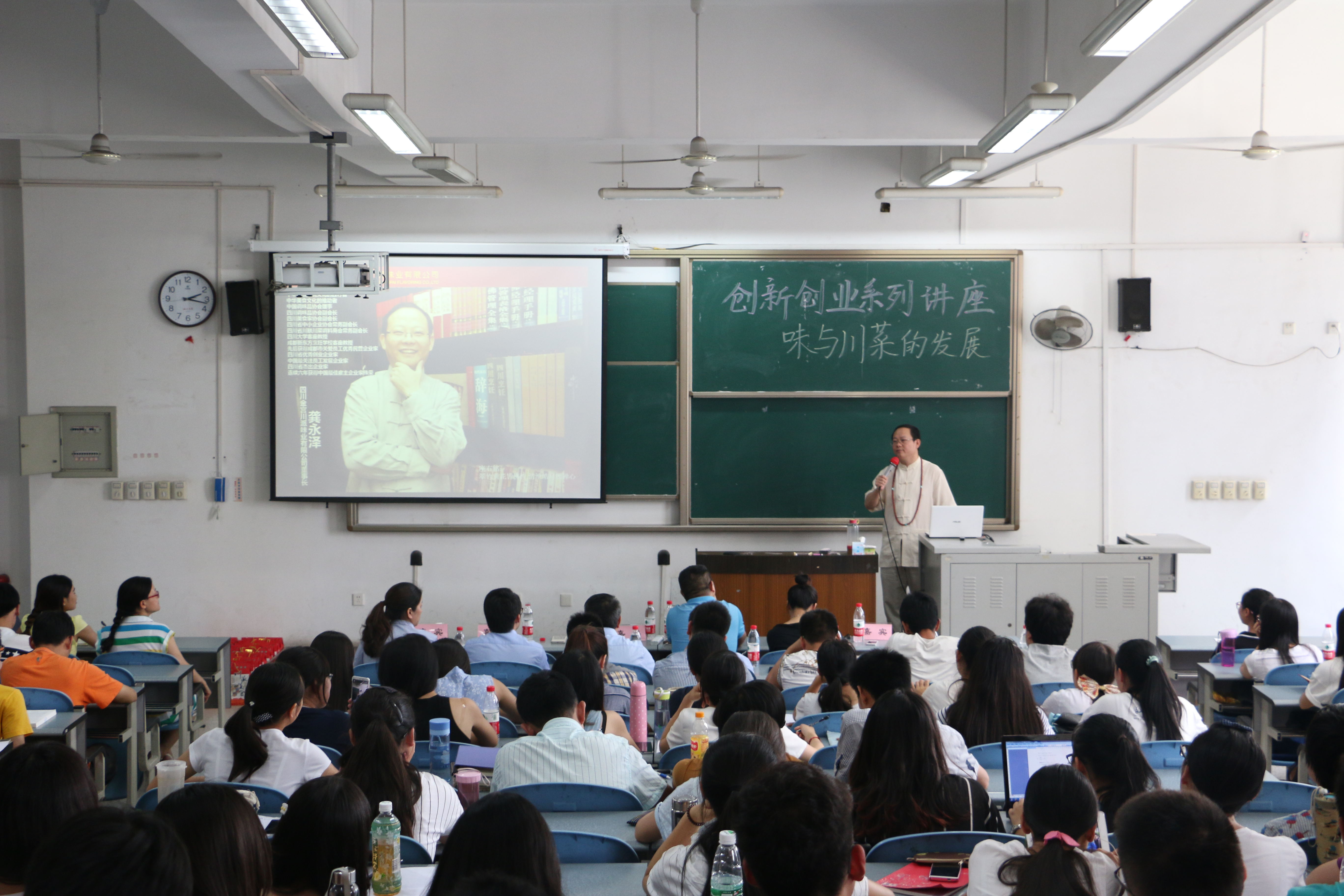 2015年7月10日下午14:00,四川大学威廉williamhill体育创新创业系列讲座之“味与川菜的发展”在四川大学江安校区综合楼C座303教室圆满举行。本次讲座由威廉williamhill体育团委学生会主办。到场嘉宾有,四川金宫川派味业有限公司总裁兼四川省调味品协会副会长、川商理事会主席团主席龚永泽先生及随行管理团队,四川江中源食品有限公司总经理潘亮先生,成都市盈宇食品有限公司董事长助理代殊同女士,威廉williamhill体育食品工程系副系主任贾丽蓉副教授及威廉williamhill体育李欣蔚老师。贾丽蓉副教授首先为本次讲座致开场辞。接下来,龚永泽先生发表了幽默风趣但却发人深省的讲话。演讲中,龚永泽先生首先从自身经历着手,提醒同学们要学会感恩,怀着一颗敬畏之心做人、做事、做食品。龚永泽先生说,从吃得饱到吃得好到吃出品味和文化,食品企业也在不断地改革和提升。民以食为天,挖掘食材的内在潜力,提升食品的多样性及在新领域的应用已经成了食品创新发展的主流方向,而这其中,川菜又以其包容、创新、百菜百味的特点,成为佼佼者。一个品牌是由品味、品德、品质三部分组成,龚永泽先生强调,在打开食客味觉的同时,坚守自己的原则,用心做出好的味道,才是食品行业的正道。最后,同学们就自己在食品学习过程中的遇到的疑问提出了问题,龚永泽先生一一予以耐心的解答并为大家派发了礼品。合影留念后,为期三个小时的讲座圆满结束。本次讲座使同学们对食品行业的现状及发展前景有了一个更深入的认识,在为食品专业同学授业解惑的同时,也让外专业同学受益匪浅。在食品问题层出不穷的当代社会,唯有保住一颗本心,味的发掘和发展才有意义。