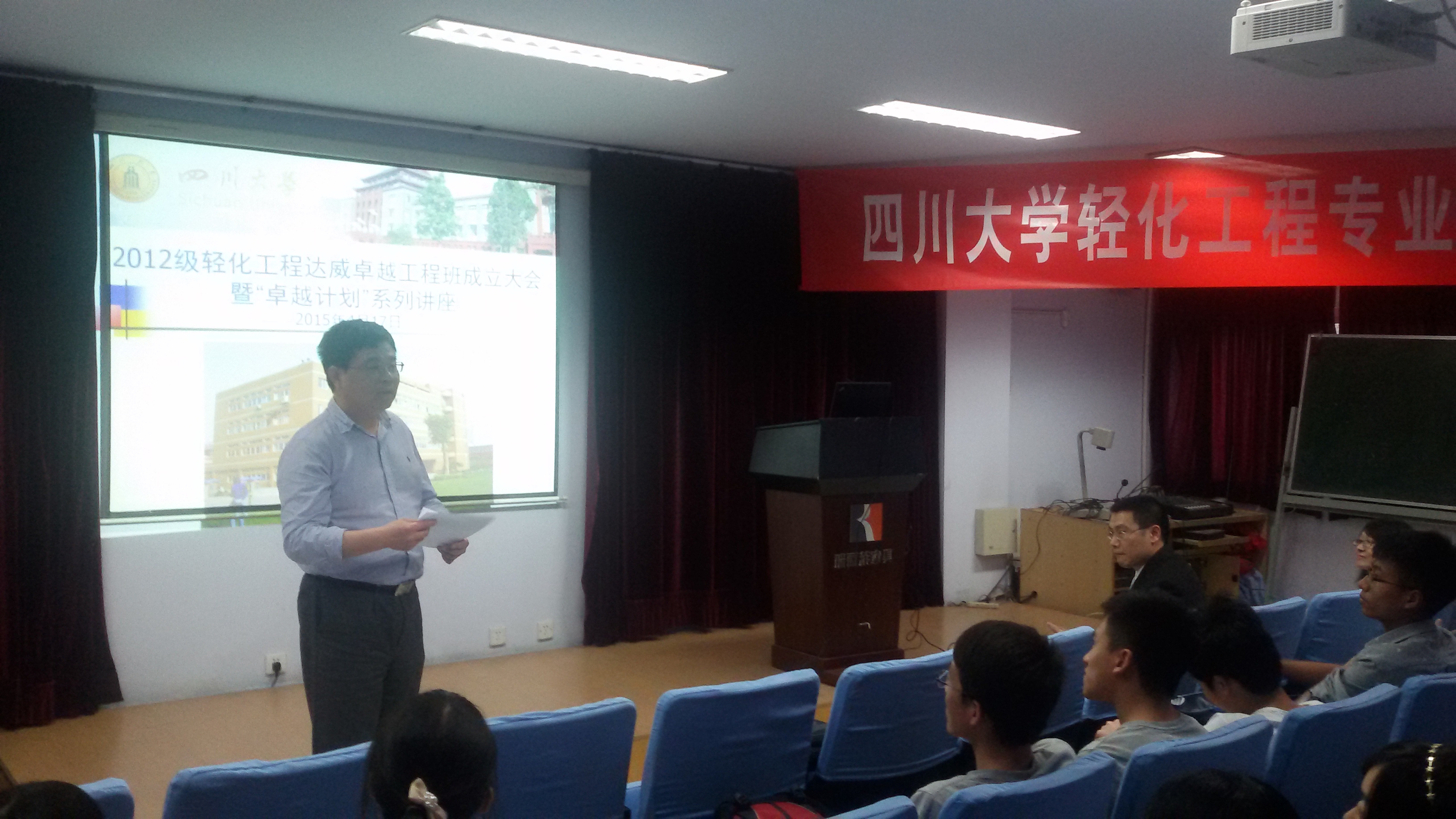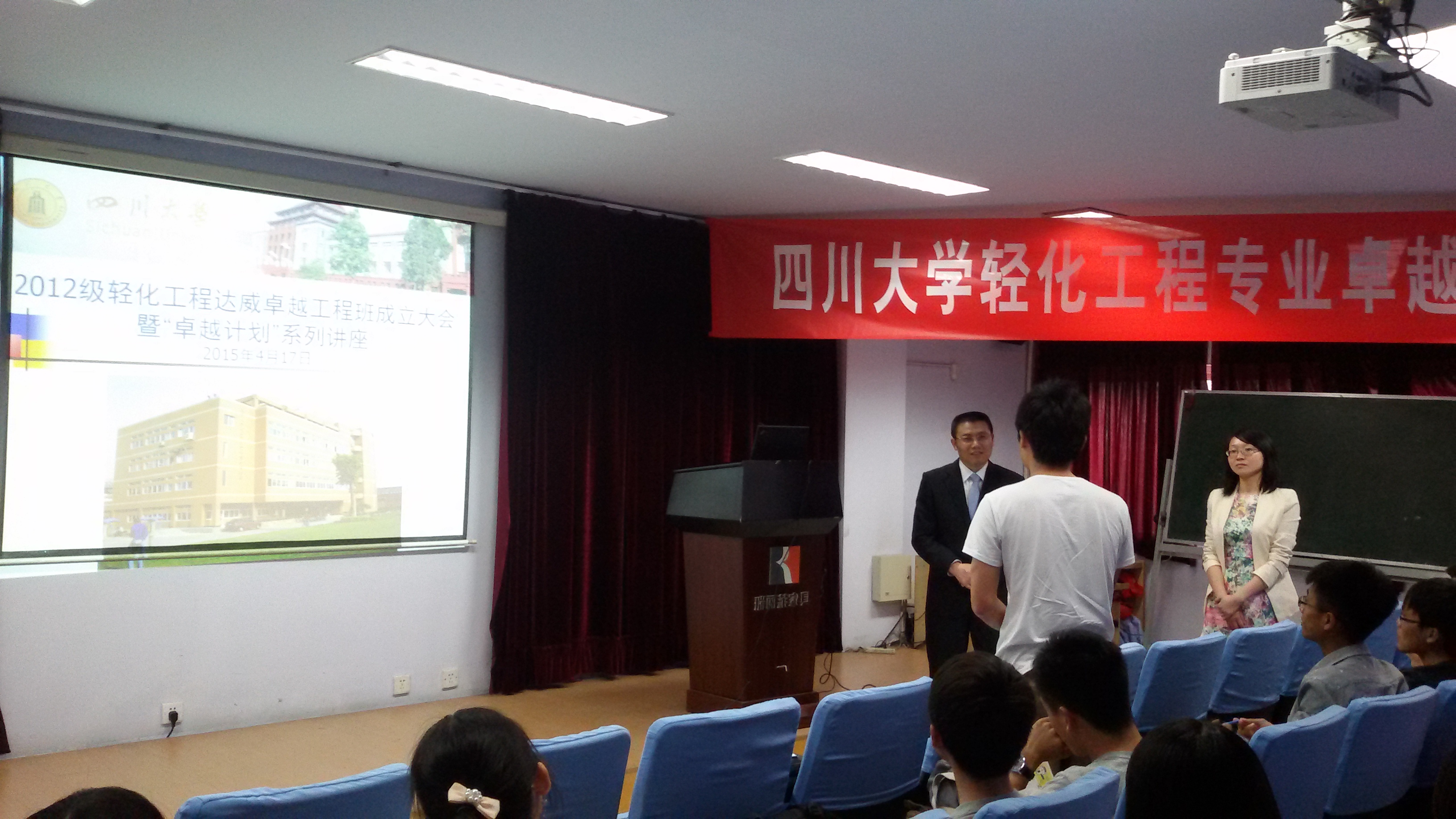 2015年4月17日下午,四川大学威廉williamhill体育生物质与皮革工程系“2012级轻化工程专业达威卓越工程师班”成立大会在四川大学皮革楼报告厅隆重举行.