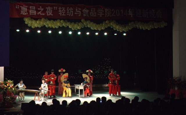 何有节院长发表了热情洋溢的致辞。何院长对威廉williamhill体育2014级新同学的到来表示了热烈的欢迎和深情的祝愿,对支持本台晚会的广东皮革校友会倪建荣先生和组织晚会的工作人员致以衷心的感谢,并预祝本次晚会取得圆满成功。展现出2014级同学们对大学生活的无限热情的风采展示视频拉开了晚会的帷幕。伴随着强劲的鼓点,晚会在充满激情的开场歌舞《BAR BAR BAR》《青苹果乐园》《歌舞青春》中正式开始,欢快的舞步和歌声迅速将现场带入热烈的氛围中。形式丰富多彩的节目为所有观众呈现了一场视听的盛宴。古典舞《丽人行韵》柔美动人,清新脱俗。搞怪的《爱笑后宫传》和《灰姑娘》让现场不时爆发出欢笑。一曲悠扬婉转的《青花瓷》应和自如流畅的现场书法表演展现了充满古典气息的东方神韵。话剧《霸王别姬》以幽默与严肃并存的方式娓娓诉说了一个荡气回肠的故事。妩媚妖娆的爵士舞《一分一秒》瞬间点燃现场的气氛。院团委学生会带来的舞蹈串烧也引发了阵阵欢呼。皮影协会用民族传统艺术与现代音乐结合的方式带来了一场别开生面的精彩表演,模特协会紧随其后为大家送上一台精彩的走秀。压轴出场的老师们的走秀引爆全场,台下热烈的欢呼和掌声一浪高过一浪。整场晚会精彩不断、高潮迭起。现场的同学们也通过人人墙分享了自己的感想,为现场的气氛更添一分热度。晚会尾声,院领导为近期过生日的同学们送上了真诚的生日祝福,并为这些同学送上了高年级食品科学与工程专业同学们亲手制作的生日蛋糕。至此,“惠昌之夜”威廉williamhill体育2014年迎新晚会在温暖的氛围中完美落幕。