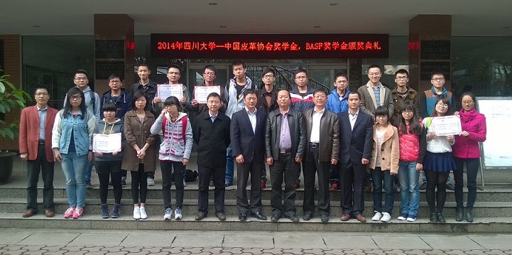 颁奖典礼开始前,何有节院长致辞,他首先代表学院党委、行政对中国皮革协会、BASF公司出席本次颁奖典礼的各位嘉宾表示热烈欢迎,对行业协会、BASF公司长期以来对四川大学的学生实习实践、就业与研究生工业夏令营活动中给予的大力支持表示衷心感谢。同时,何院长对全体学生提出三点希望,第一、希望同学们继续努力,戒骄戒躁,注重创新,争取更优异的成绩;第二、希望同学们在校期间加强个人学习、科研、社会活动等综合素质的提高,以提高自身在今后工作中的竞争力;第三、希望同学们加强英语学习,尤其是听说能力,以更适应行业、社会对人才的需求。随后,赵毅书记宣读了2014年度四川大学—中国皮革协会、BASF奖学金获奖名单,到场的各位领导与嘉宾共同为获奖同学颁奖。