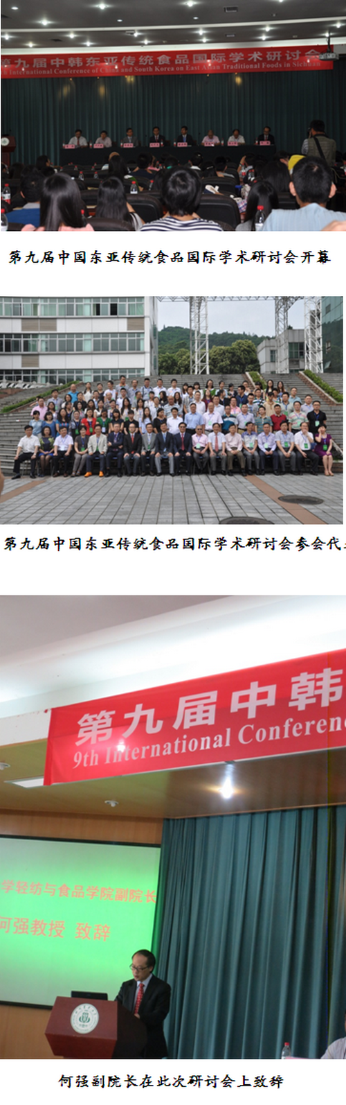 2014年6月23日至6月25日,由四川大学食品工程系主办、四川农业大学食品学院承办的“第九届中韩东亚传统食品国际学术研讨会”在四川农业大学雅安校区成功召开。参加此次会议的代表有韩国木浦大学、四川农业大学、中国农业大学、山东农业大学、西昌学院等十余所高校的教师和同学。四川农业大学副校长陈代文教授、韩国木浦大学朴亮均教授、我院副院长食品系系主任何强教授依次为此次研讨会致辞。会议期间,来自韩国木浦大学、中国农业大学、山东农业大学、四川农业大学和四川大学等高校的食品专业类的专家学者进行了精彩的学术报告。最后,在四川农业大学老师的带领下,老师们参观了蒲江当地著名的茶厂。 此次研讨会增进了中韩两国食品专业相关的学术交流,并拓宽了学术视野。