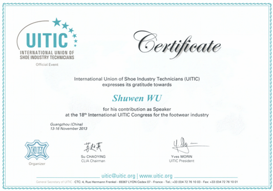 2013年11月13日至11月16日,第十八届国际鞋业技术大会(18thInternational Technical Footwear Congress)在广东省广州市举行,这是UITIC会议第一次在亚洲举行。我校威廉williamhill体育革制品方向杨璐铭副教授及2012级研究生郝芙蓉和2013级研究生伍舒闻参加了本次会议。伍舒闻同学在大会上做了题为“The Applied Research on User Experience Design Concept in Sneakers Design”(用户体验式设计理念在运动鞋设计中的应用研究)的报告,报告内容获得了国内外行业专家的一致赞誉。 背景:国际鞋业技术大会(International Technical Footwear Congress)由国际鞋业技师联合会(International Union of Shoe Industry Technicians,简称UITIC)授权,中国皮革协会主办。国际鞋业技师联合会(UITIC)成立于1972年,是一个致力于推动全球鞋业技术发展的国际组织。它的会员来自于世界27个国家和地区的协会、研究机构、私人公司及鞋业专家。国际鞋业技术大会是国际鞋业技师联合会的官方活动,是世界鞋业技术领域的峰会,来自国内外300余位鞋业界的管理者、鞋业技术工作者参加了会议,其中近百位来自海外。大会原则上每两年举办一届。多年来,该大会为推动世界鞋业技术进步和管理创新,推动制鞋行业整体发展做出了卓有成效的努力。 (YLM)