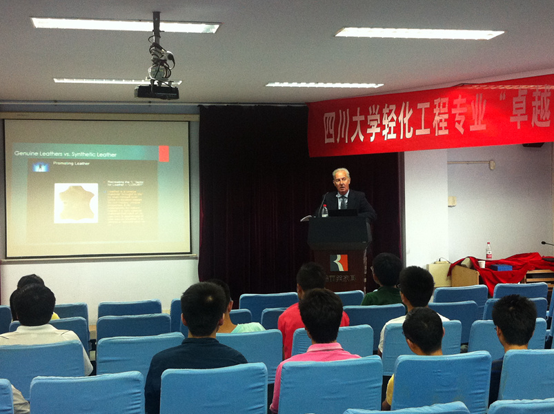 2013年9月9日下午,意大利Repico皮化公司全球营销总监Fabrizio Ugolini先生到访我院皮革系,并在皮革楼报告厅就“真皮革与合成革:历史、现状与前景”这一热点主题与我院皮革系学生展开讨论。