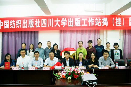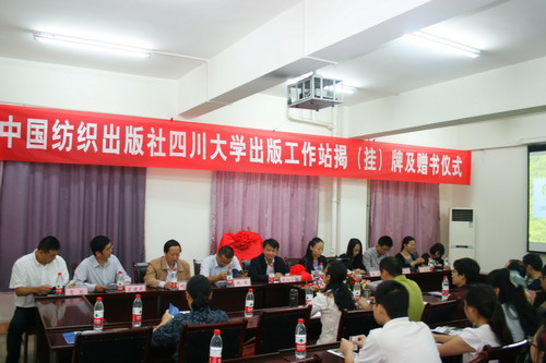 中国纺织出版社四川大学出版工作站揭(挂)牌仪式于9月26日上午9:00在四川大学望江校区纺工楼321室如期举行。中国纺织出版社总编辑李炳华,服装图书分社副社长张晓芳,图书营销中心副主任杨旭一行六人,及威廉williamhill体育党政领导,纺织服装等专业的教师、研究生共计30余人参加了此次活动。仪式由兰建武副院长主持,何有节院长代表威廉williamhill体育致欢迎词,赵毅书记与李炳华总编合力完成工作站的揭牌,肖凯副院长代表学院接受了出版社的赠书,最后由出版社李总编向工作站负责人颁发了工作站聘书。至此,“中国纺织出版社四川大学出版工作站”正式在我院落成。中国纺织出版社(ChinaTextile&Apparel Press)成立于1953年,为“全国百佳图书出版单位,国家一级出版社”,新闻出版总署评定的国家级良好出版社。其出版图书包括纺织工程、轻化工程、服装服饰、工艺美术、经济管理、大众生活、社科历史、青少年教育八大板块。除出版产、学、研一线服务的科学技术类图书、工具图书、高等教育及职业教育类教材教辅外,还出版了大量面向大众的实用类社科图书。目前有2500种以上的可供图书品种,年出书达1500多种。近20年里,先后有六百多种图书获得了国家和省部级奖励。中国纺织出版社四川大学出版工作站的设立,将对我院教材教辅图书的出版和使用,又添一个良好的平台,有利于进一步推进教材建设基本工作;对适应新时期本科教育教学改革,对实现我院发展目标,对培养“具有深厚人文底蕴、扎实专业知识、强烈创新意识、宽广国际视野的国家栋梁和社会精英”人才,对提高教学质量等方面都具有较好的促进作用。仪式之后,服装图书分社、纺织与轻化图书分社的编辑们提供了现场咨询:包括增补“十二五”部委级教材、科研验收结项报告的整理出版、博士论文整理出版等;各位老师畅谈了自己对教材建设、图书出版方面的设想,如联合其他院校做区域性特色教材的出版、全院自己各种教材的打包出版等。