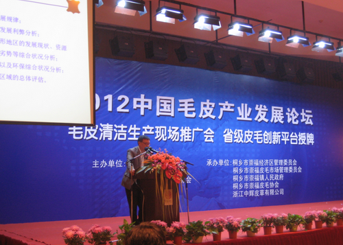 2012年10月28日中国毛皮产业发展论坛、毛皮清洁生产现场推广会在浙江省桐乡市隆重召开。四川大学制革清洁技术国家工程实验室主任石碧院士、威廉williamhill体育院长何有节教授、教育部轻化工程专业教学指导分委员会主任陈武勇教授、威廉williamhill体育生物质与皮革工程系副主任张宗才教授等参加了相关的活动。本次活动由中国皮革协会、浙江省皮革行业协会、桐乡市人民政府主办,崇福经济区技术管理委员会、桐乡市崇福镇人民政府、桐乡市崇福皮毛协会、浙江中辉集团承办。来自全国知名高校,各地皮草知名企业,业内外新闻媒体等单位的代表约80余人参加了本次活动。