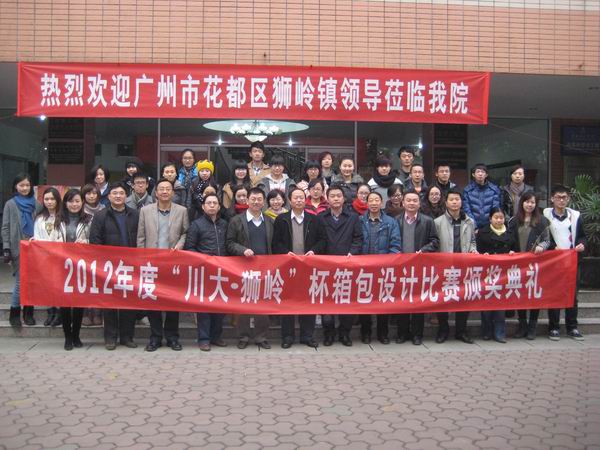 2012年12月17日上午9:00,2012年度“川大•狮岭”杯箱包设计比赛颁奖典礼在皮革楼二楼报告厅顺利举行。参加本次颁奖典礼的有广州市花都区狮岭镇罗勇镇长、叶志锋常务副镇长、路彦华党委委员、胡才波副镇长,狮捷公司胡文峰总经理,狮岭镇党政办陈文勇副主任以及威廉williamhill体育院长、生物质与皮革工程系系主任何有节教授,教育部轻化工程教学指导委员会主任陈武勇教授,院党委副书记刘晓虎副教授,革制品教研室徐波主任,皮革商贸教研室刘健西主任,革制品教研室杨璐铭副教授、姚云鹤老师。到场的还有全体获奖同学、2010级革制品设计方向、皮革商贸方向及服装设计与工程专业本科生。颁奖典礼由学生科科长冯国涛老师主持。颁奖典礼开始前,何有节院长致辞。他首先代表学院党委、行政对广州市花都区狮岭镇人民政府受邀出席本次颁奖典礼的各位领导与嘉宾表示热烈欢迎,并对狮岭镇长期以来对我校革制品方向的教育教学、人才培养、科研合作等领域的关心与支持表示衷心感谢。何院长全面介绍了狮岭镇与我校的合作项目,尤其是在学生实习实践、设计比赛方面给予了很多指导与帮助,为学生提供了良好的发展平台。其次,罗勇镇长代表狮岭镇党委、政府讲话。罗镇长首先对通过自己努力,经过严格评比,最后获奖的作品与同学表示祝贺,对四川大学在皮革行业革制品设计方向的人才培养作出的努力表示感谢。罗镇长全面介绍了狮岭镇集箱包的设计、生产、销售、运输为一体的产业集群优势,希望革制品设计方向的有志之士能到狮岭发展,为行业的发展作出更大的贡献。紧接着,刘晓虎副书记宣读了2012年度“川大•狮岭”杯箱包设计比赛的获奖名单,到场的各位领导与嘉宾为获奖同学一一颁奖。最后2009级革制品设计专业冉美玲同学作为获奖学生代表发言。 颁奖典礼结束后,参会领导与嘉宾参观了我院革制品设计教研室及重点实验室,并在皮革楼二楼会议室进行了校-镇合作交流座谈会。至此,2012年度“川大•狮岭”杯箱包设计比赛颁奖典礼及合作交流座谈会取得圆满成功。
