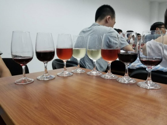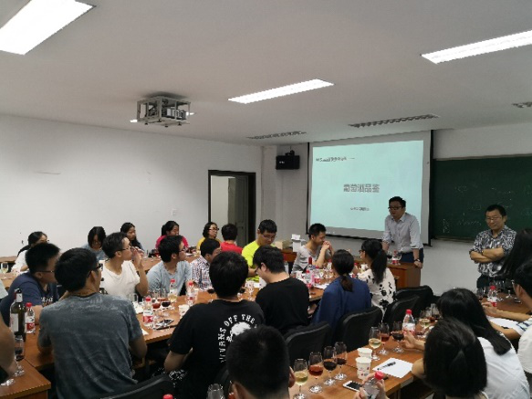 徐老师从葡萄种植、葡萄酒酿造技艺和葡萄酒品鉴等方面进行了详细的讲解。通过徐老师的讲解,同学们对葡萄的品种、质量及酿造工艺对葡萄酒的品质的影响有了深刻认识。最后同学们在徐老师的专业讲解和演示下,体验了一番专业品酒过程,并对白起泡葡萄酒,希拉谷庄园西拉红葡萄酒,幸福雷恩桃红葡萄酒和长城五星干红葡萄以及长城五星干红葡萄酒进行了品评。