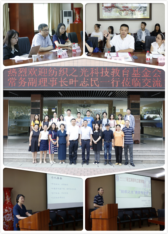 我院肖凯副院长代表威廉williamhill体育致欢迎辞,并就四川大学与我院的基本情况、成果与发展等进行了简要介绍;叶志民副理事长也介绍了“纺织之光”基金会的由来和发展情况,说明了此次回访考察的重要目的和意义。近两年我院获“纺织之光”教师奖施亦东副教授、陈胜副教授分别介绍了自己的获奖心得,以及从事纺织教育、科研的经历与感悟,对未来征程许下“不忘初心,砥砺前行”。后续交流中,叶志民副理事长、白静副秘书长与到场教师们、同学们进行了互动式现场交流,并仔细了解了历年获奖学生的成长与发展情况。