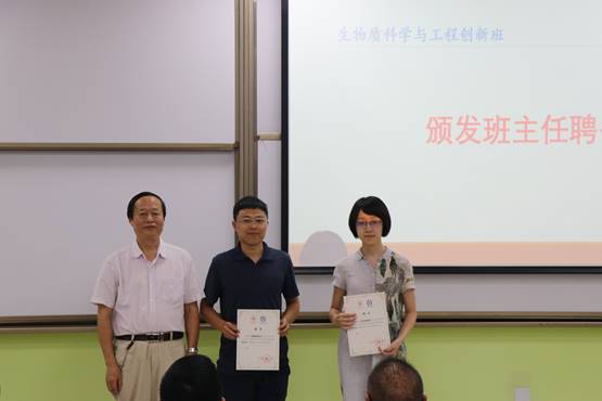 随后,副院长彭必雨教授为首批创新班学员代表颁发了录取通知书,并勉励同学们继续勤奋学习、把握今朝、再创辉煌。院长何有节教授宣读了《威廉williamhill体育关于生物质科学与工程创新班平台负责人、课程负责人、名誉班主任和班主任的聘任决定》,刘晓虎书记向相关负责人颁发聘书,并表示聘书颁发后,老师们将责任重大、使命光荣,希望各位老师以高度的责任感与使命感,共同努力,携手规划好、建设好创新班的各项工作。