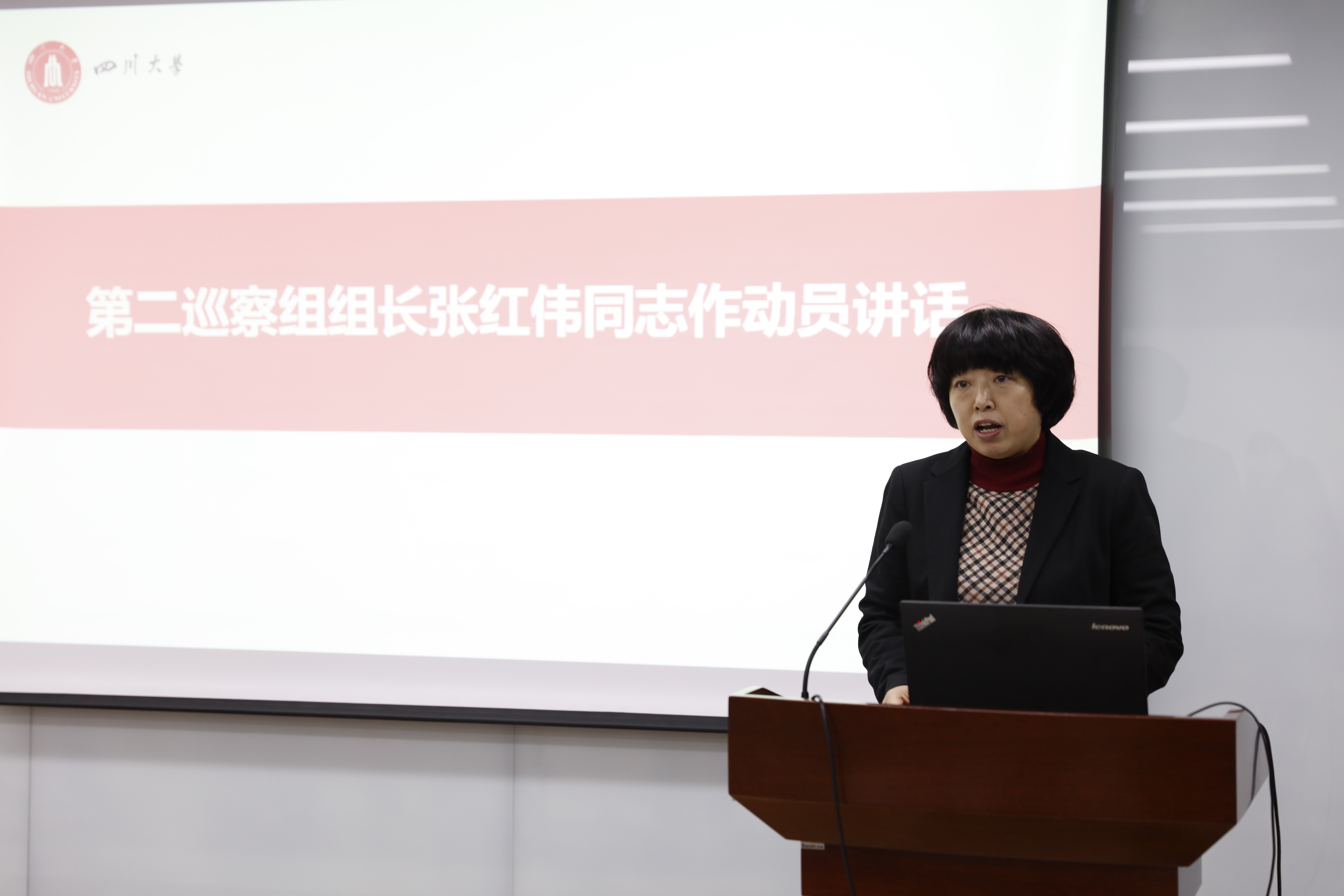 第二巡察组组长张红伟同志作动员讲话,指出,本轮巡察是在“不忘初心、牢记使命”主题教育期间,深入学习贯彻十九届四中全会精神背景下开展的,是贯彻落实党的十九大对巡视巡察工作要求,切实增强“四个意识”,做到“两个维护”,推动全面从严治党向基层延伸、向纵深发展的重要举措。具体提出三点意见:一是认真学习领会,把握精神要义,切实把思想和行动统一到中央、教育部和学校对巡察工作的决策部署上来;二是突出巡察重点,明确工作任务,坚决贯彻落实政治巡察各项要求;三是依规依纪开展巡察,加强组织协调,切实保证巡察工作扎实有序推进。会上,她还就巡察工作安排和信访渠道等情况作了说明。