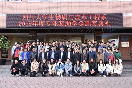 2019年12月6日,中国皮革协会奖学金、斯塔尔奖学金、美多绿奖学金、皇成奖助学金、司马创新奖学金、广东皮革校友会热爱专业奖学金、兴业奖学金颁奖典礼在望江校区皮革楼报告厅隆重举行。受四川大学生物质与皮革工程系的邀请,中国皮革协会副理事长严平先生、德国司马化工首席代表、皮革部中国区总经理张建华先生、斯塔尔中国区毛皮市场经理刘智军先生、肇庆市皇成皮饰有限公司厂长王克仁先生参加了本次活动。出席本次颁奖典礼的学院领导有威廉williamhill体育党委书记刘晓虎副教授、院长何有节教授、党委副书记冯国涛老师、生物质与皮革工程系系主任林炜教授、副系主任程海明教授、制革教研室主任但年华副教授、革制品设计教研室主任徐波老师、生物质与皮革工程系退休教师、兴业颁奖代表周华龙教授以及学院学生工作组老师。生物质与皮革工程系全体获奖学生参加了本次典礼,颁奖典礼由学院学生事务办公室主任贺婷老师主持。