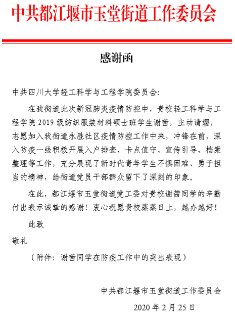 防疫期间,学院学生在做好个人防护情况下,积极参与当地社区、街道、村委的志愿服务工作,体现了当代大学生的使命与担当,为打赢防疫狙击战贡献大学生的一份力量。