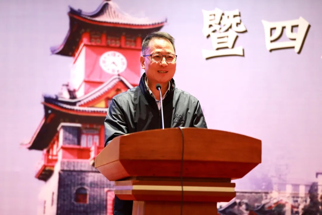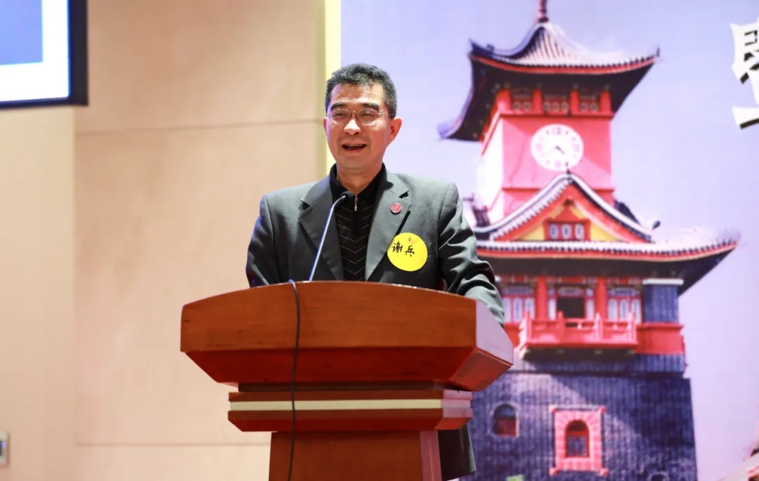 四川大学校友总会副秘书长谢兵宣读“四川大学长三角地区皮革校友联谊会批复”文件