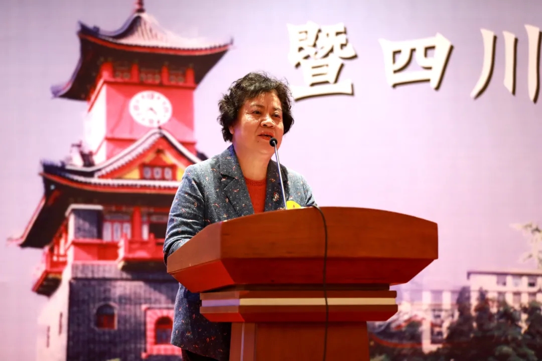 四川大学校友总会副秘书长邓建萍和四川大学生物质与皮革工程系系主任林炜授旗