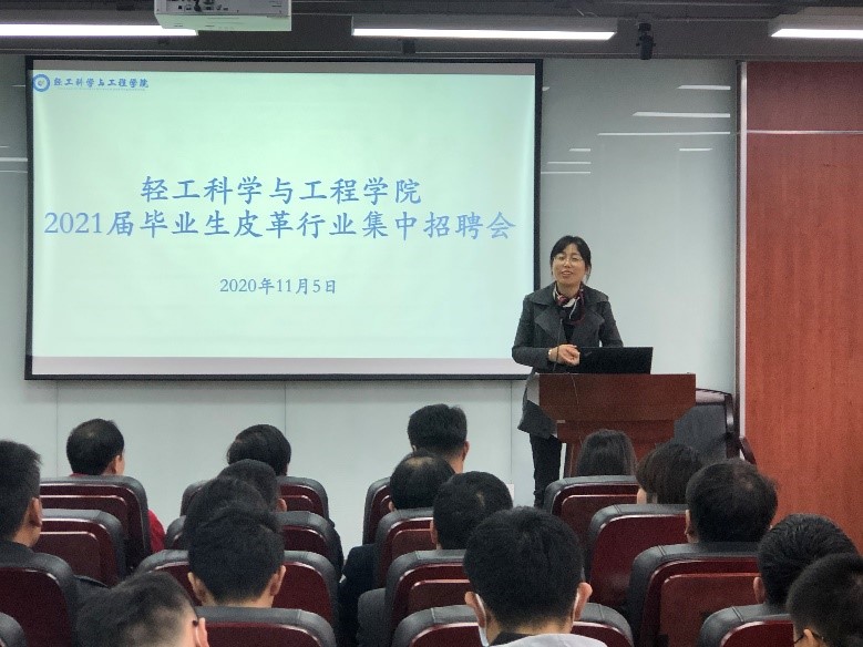 2020年11月5日,威廉williamhill体育2021届皮革行业集中招聘会在四川大学望江校区皮革楼215报告厅顺利举行。