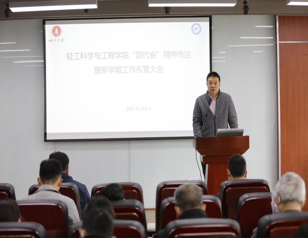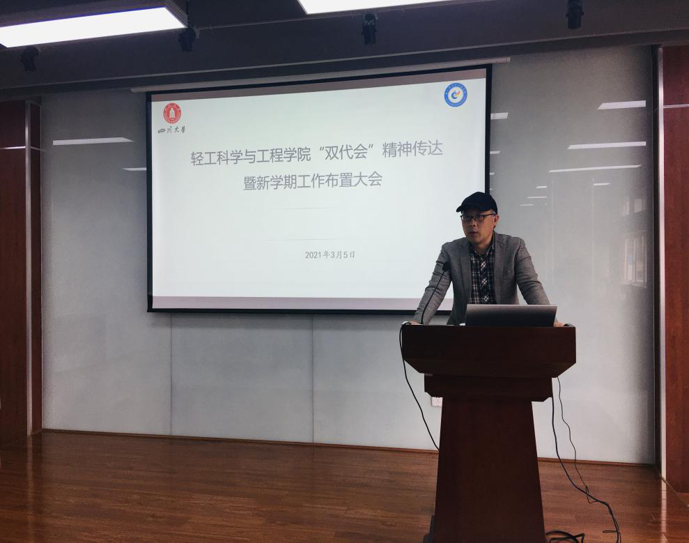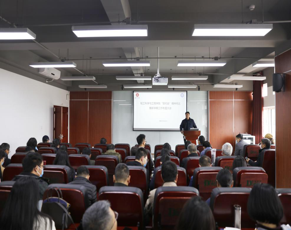 草木初萌,万物复苏。3月5日下午,学院在皮革楼215报告厅举行全院教职工大会,传达学校“双代会”精神,部署落实新学期工作,会议由刘晓虎书记主持。