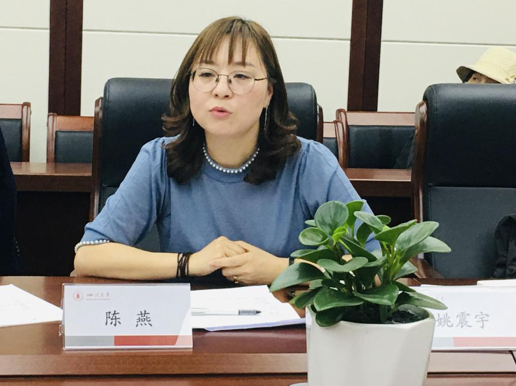 四川大学就业指导中心刘若冰副处长向来访人员介绍了川大学生近年就业情况以及四川大学开展高质量就业的四个引领计划。